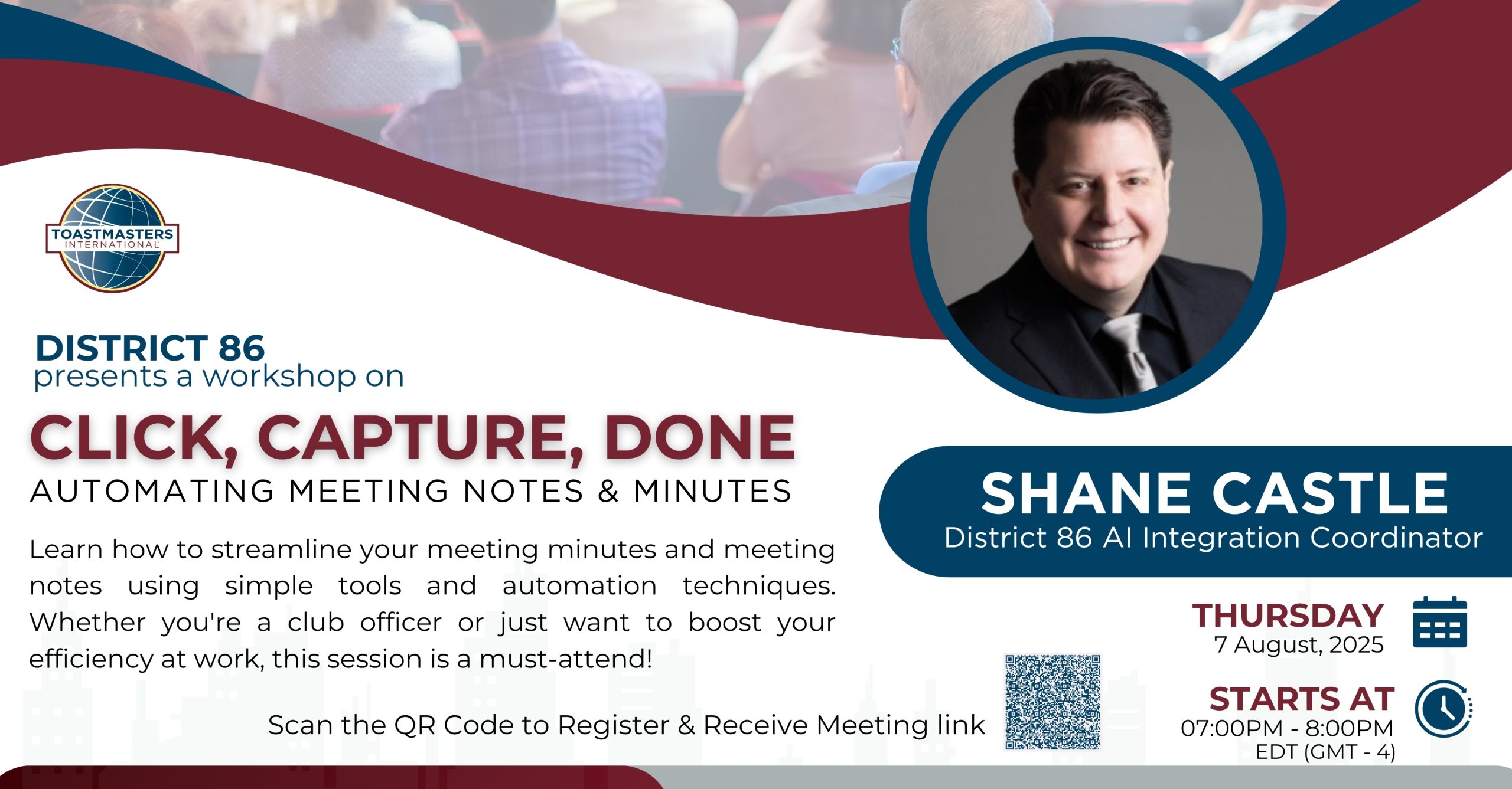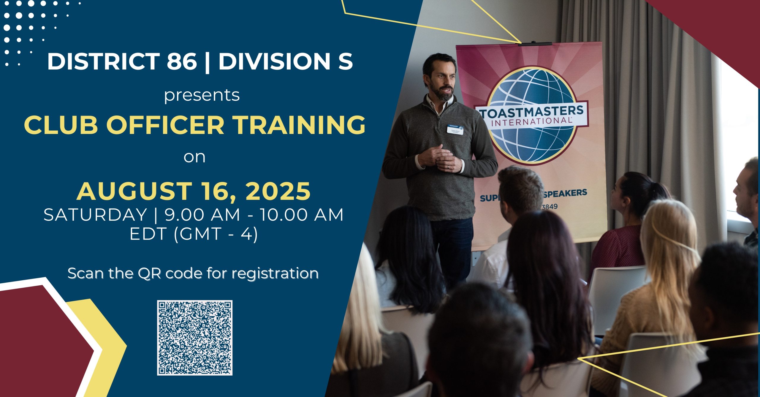 « All Events Beat the Clock Membership Building Contest May 1@12:00 am-June 30@11:59 pm Free Categories: Area and Division Director Reminders, Club Growth Director Events, Club Reminders Tags: membership building, talk up toastmasters Website https://www.toastmasters.org/leadership-central/club-officer-tools/membership-building/membership-building-programs-for-clubs Club Growth Director clubgrowthdirector@toastmasters86.org Add to calendar Google Calendar iCalendar Outlook 365 Outlook Live