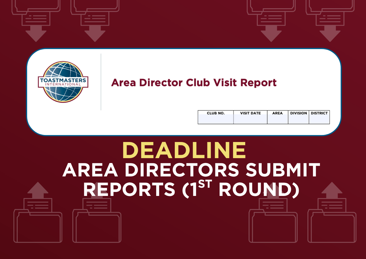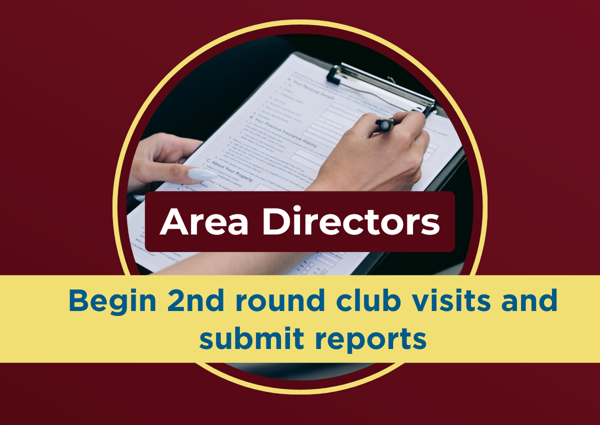 Area Directors! Submit your first-round reports by this date to ensure your Area receives full credit toward the Distinguished Area Program. Timely reporting is key to success!