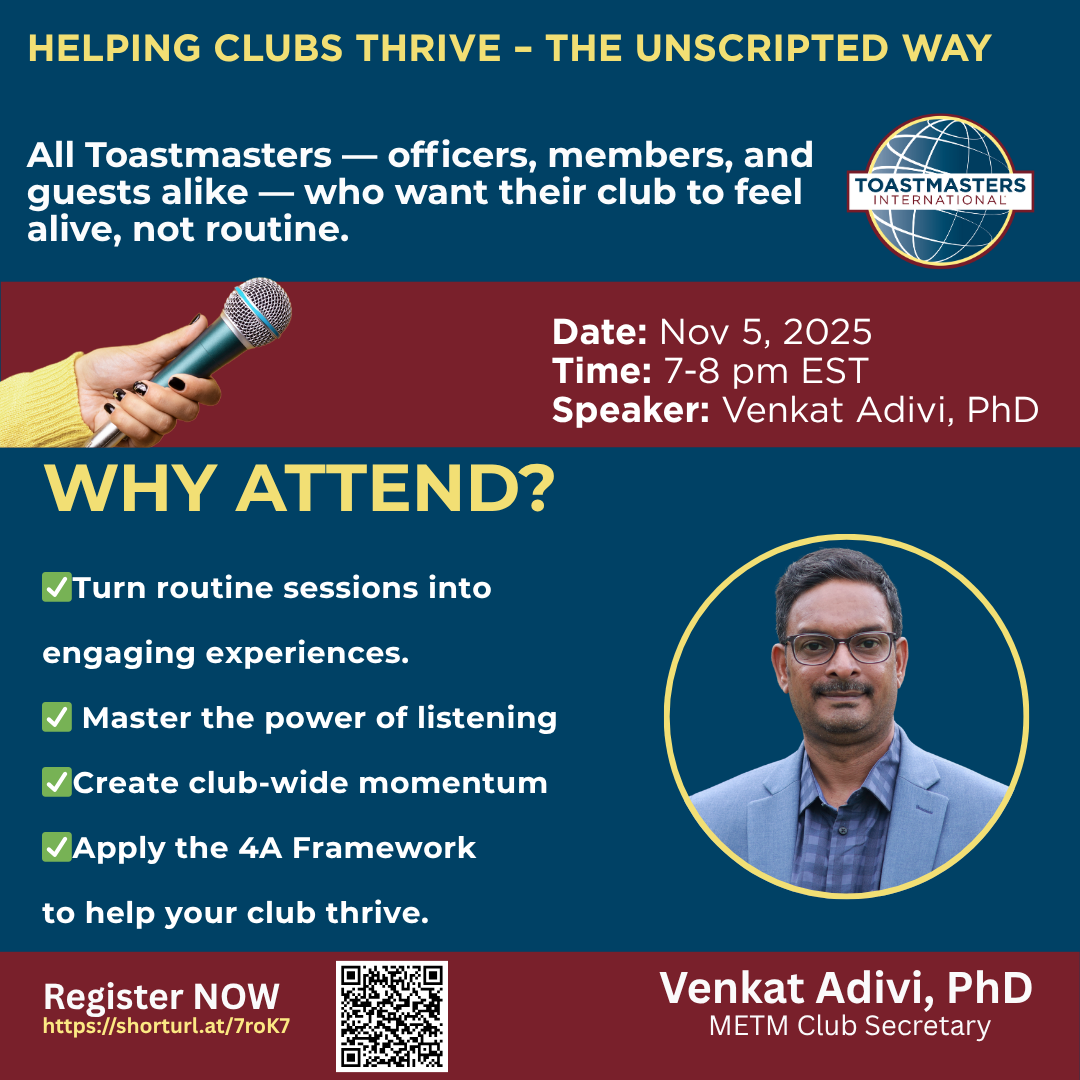 Who Should Attend This workshop is for all Toastmasters — officers, members, and guests alike — who want their club to feel alive, not routine. Whether you’re leading from the […]