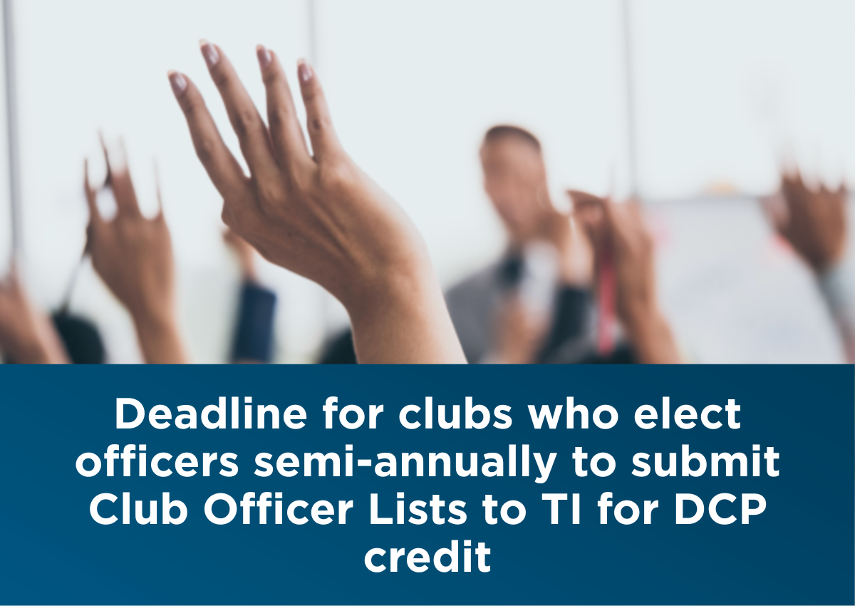 Semi-Annual Officer List Due to TI. If your club holds two elections per year, the updated list of officers must be submitted to TI Headquarters by this date to ensure […]