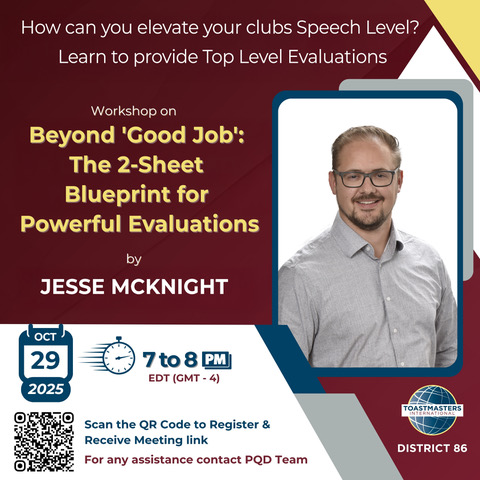 Join our next PQD Workshop and discover a simple 2-sheet system that will help you deliver evaluations that motivate, inspire, and actually help speakers grow. ✅Learn how to balance encouragement with actionable insight ✅ Understand the “hidden structure” behind effective feedback 🎯Workshop: Beyond “Good Job”: The 2-Sheet Blueprint for Powerful Evaluations 📅 Date: October 29th, 2025 🕖 Time: 7:00 PM