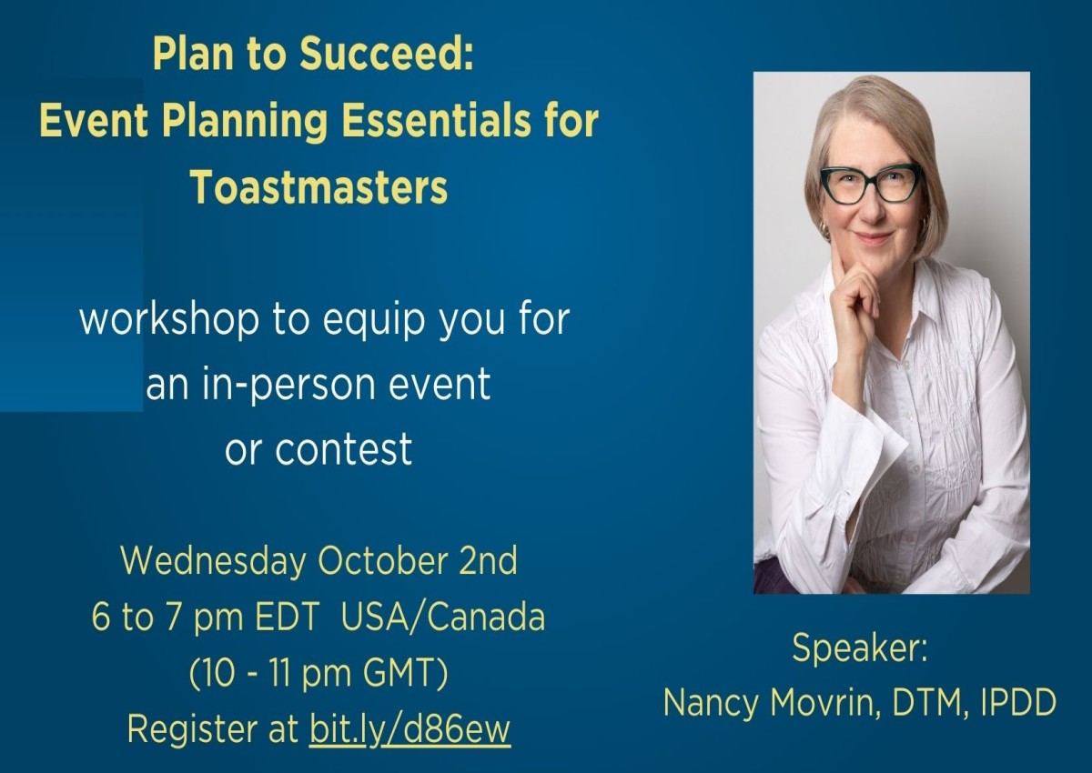 Plan to Succeed: Events Planning Essentials for Toastmasters Workshop Overview: Are you new to organizing in-person events such Toastmasters speech contests? Overwhelmed about how or where to start? Worry no more! Join us as we pull back the curtain on the essentials of event planning. Whether you’re first-time event planner, or need a refresher, this […]